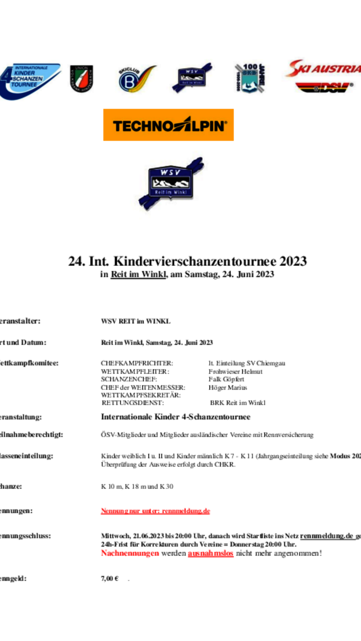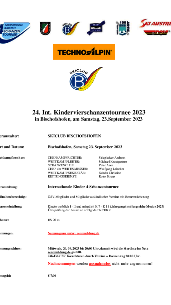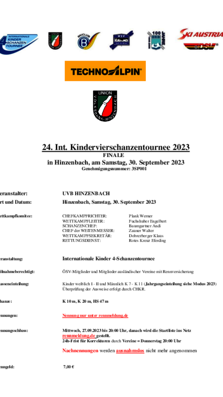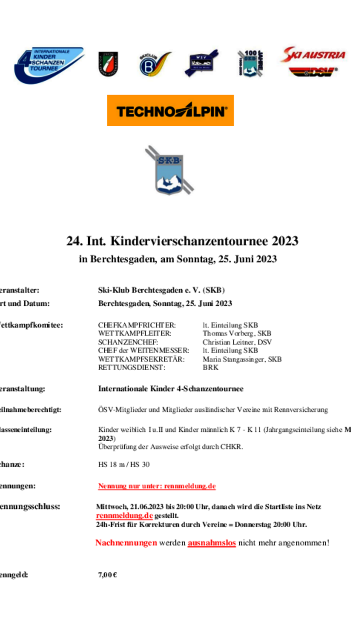 Ausschreibungen für die 24. Int. Kindervierschanzentournee 2023